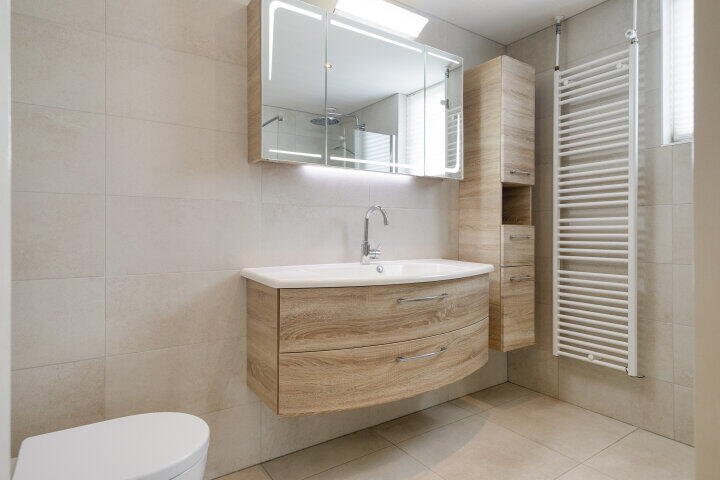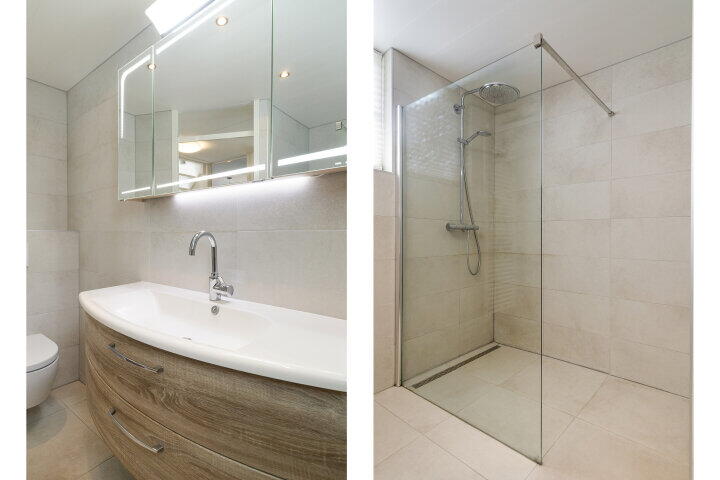 - Toilet, wastafel, wastafelmeubel, inloopdouche, vloerverwarming