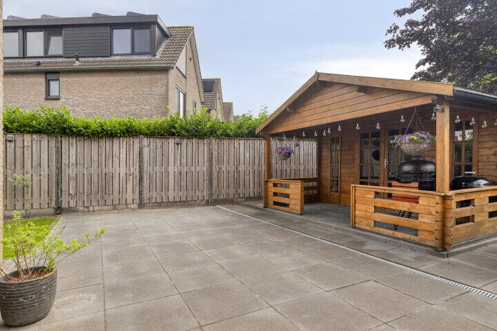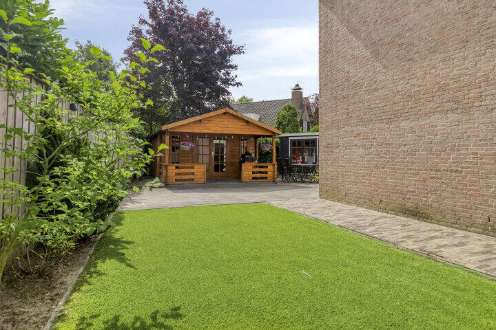 De achtertuin is een heerlijke plek met volop mogelijkheden: een garage met oprit, blokhut met veranda, losse schuur, betegeld terras, een stukje grasveld en voldoende privacy. Tevens is de woning voorzien van op afstand bedienbare rolluiken met inbraakpreventie.